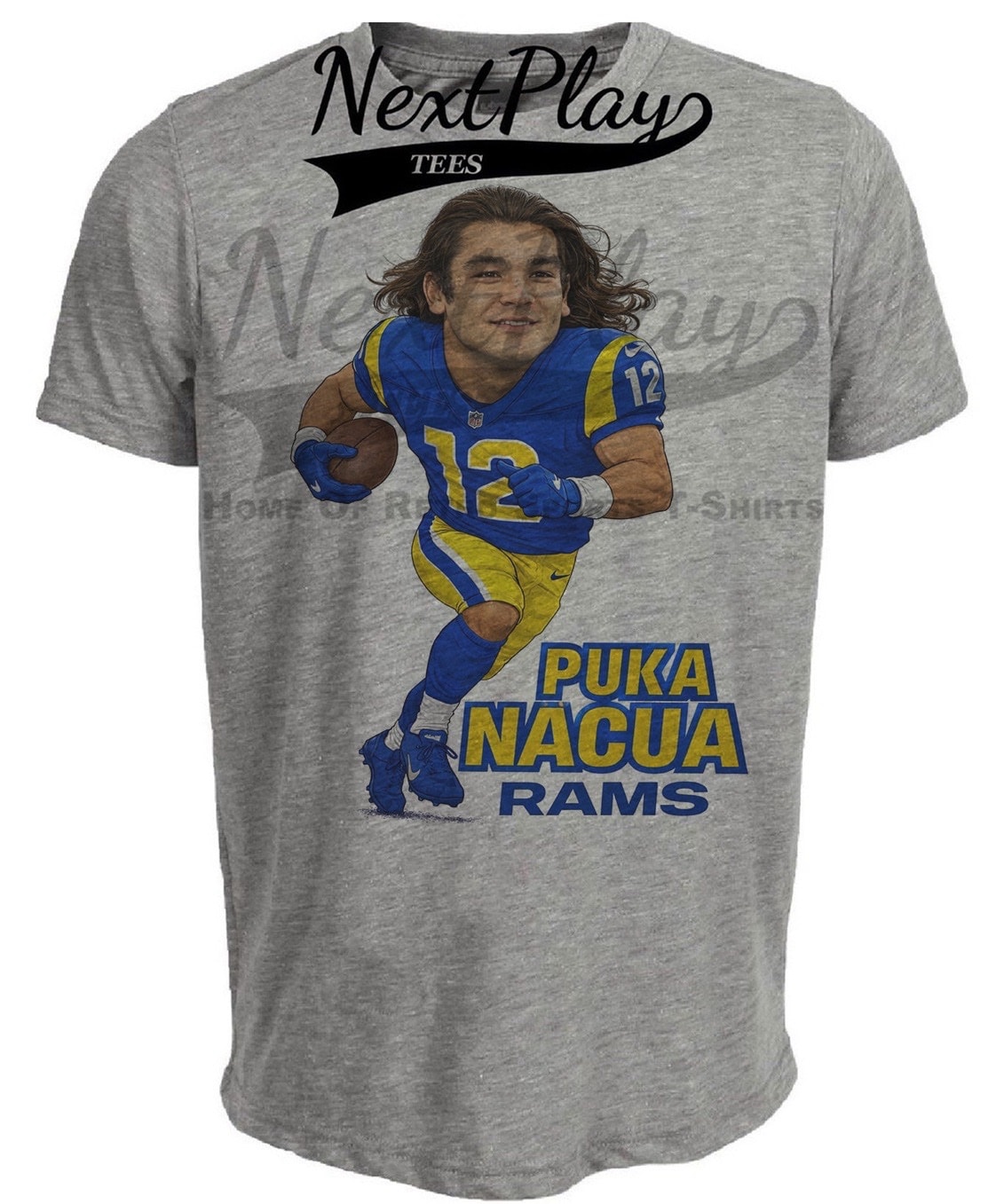 Los Angeles Rams Puka Nacua Retro Football Gray Sublimated T-Shirt