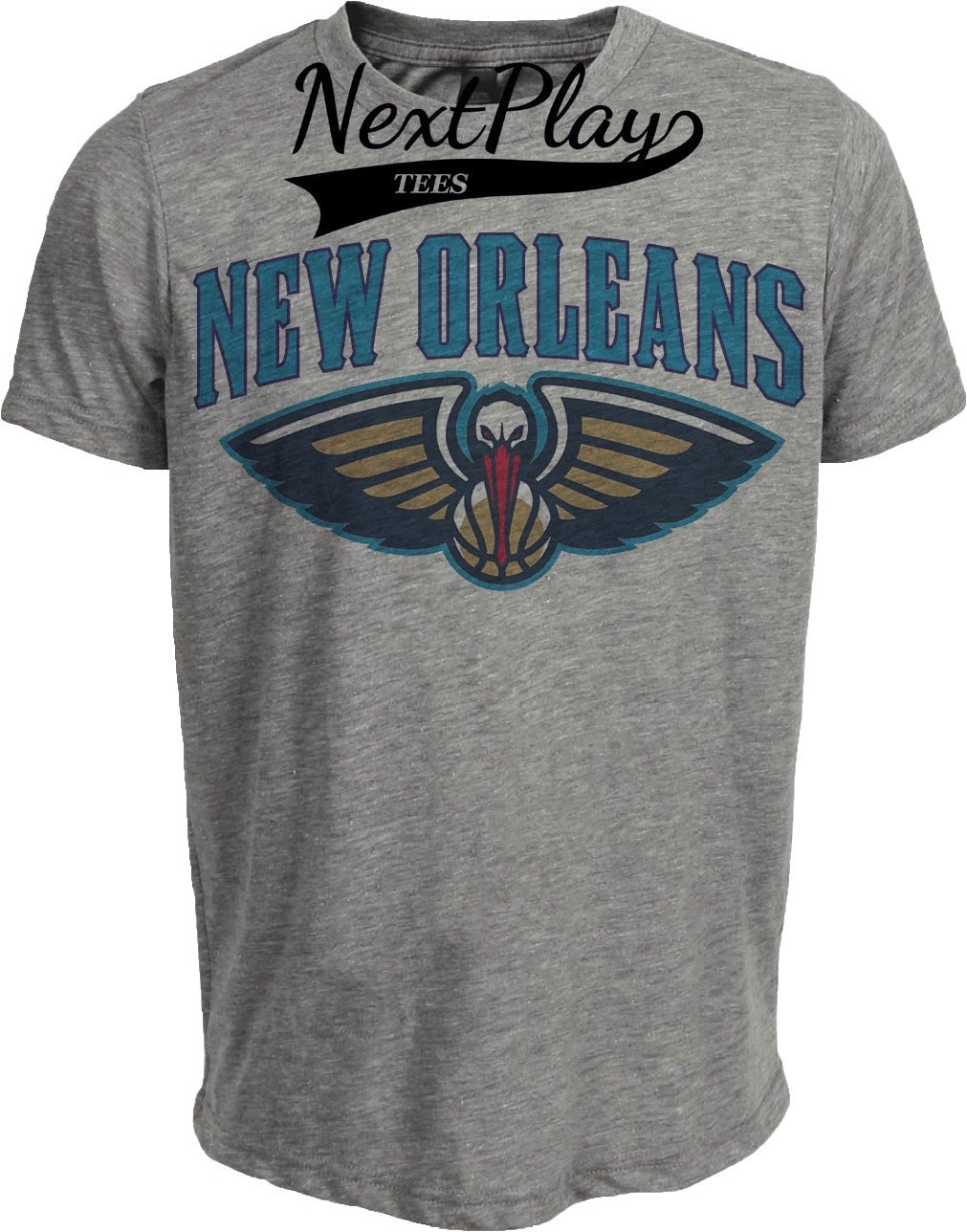 New Orleans Pelicans Retro Basketball Teal Artwork Heather Gray Sublimated T-Shirt