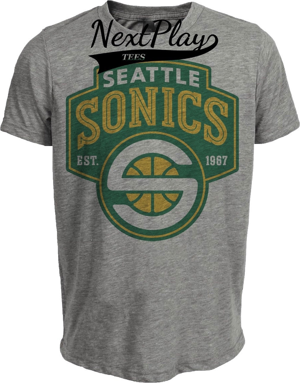 Seattle SuperSonics Retro Basketball 1995 Artwork Heather Gray Sublimated T-Shirt