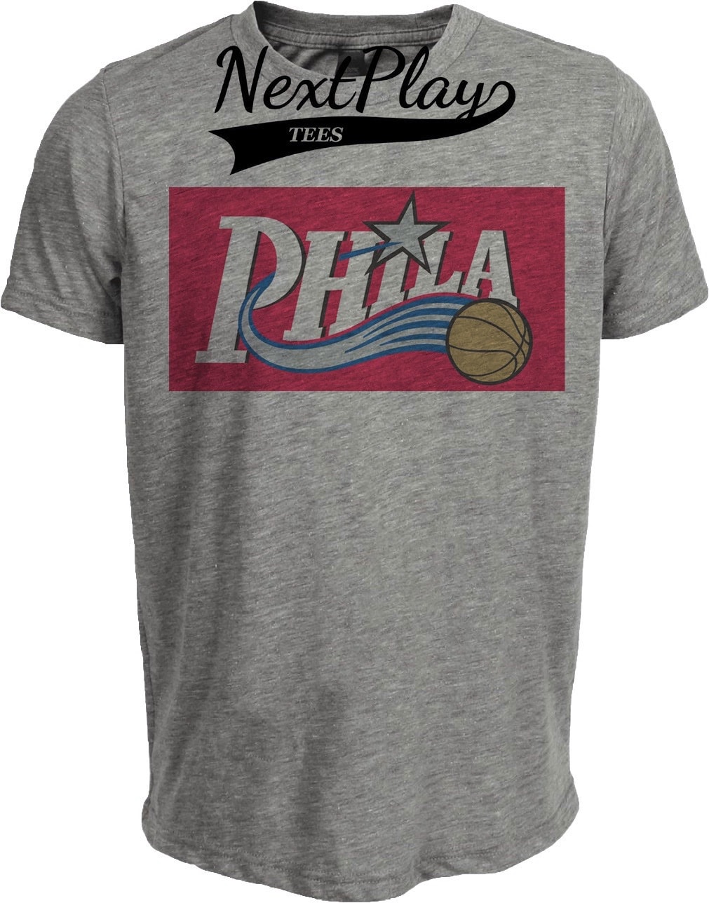 Philadelphia 76ers Retro Basketball 2002 Artwork Heather Gray Sublimated T-Shirt
