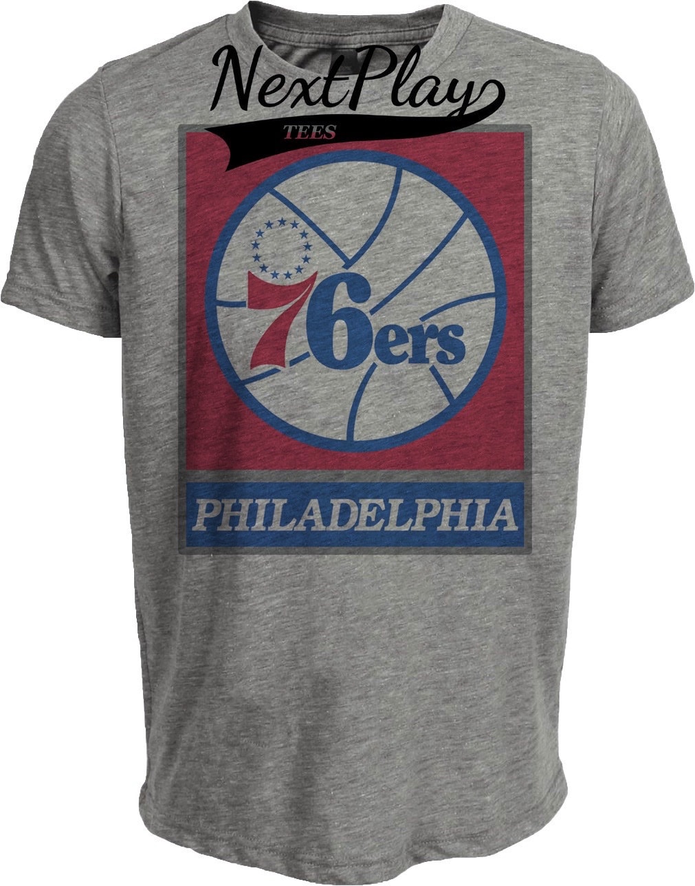 Philadelphia 76ers Retro Basketball Classic Artwork Heather Gray Sublimated T-Shirt