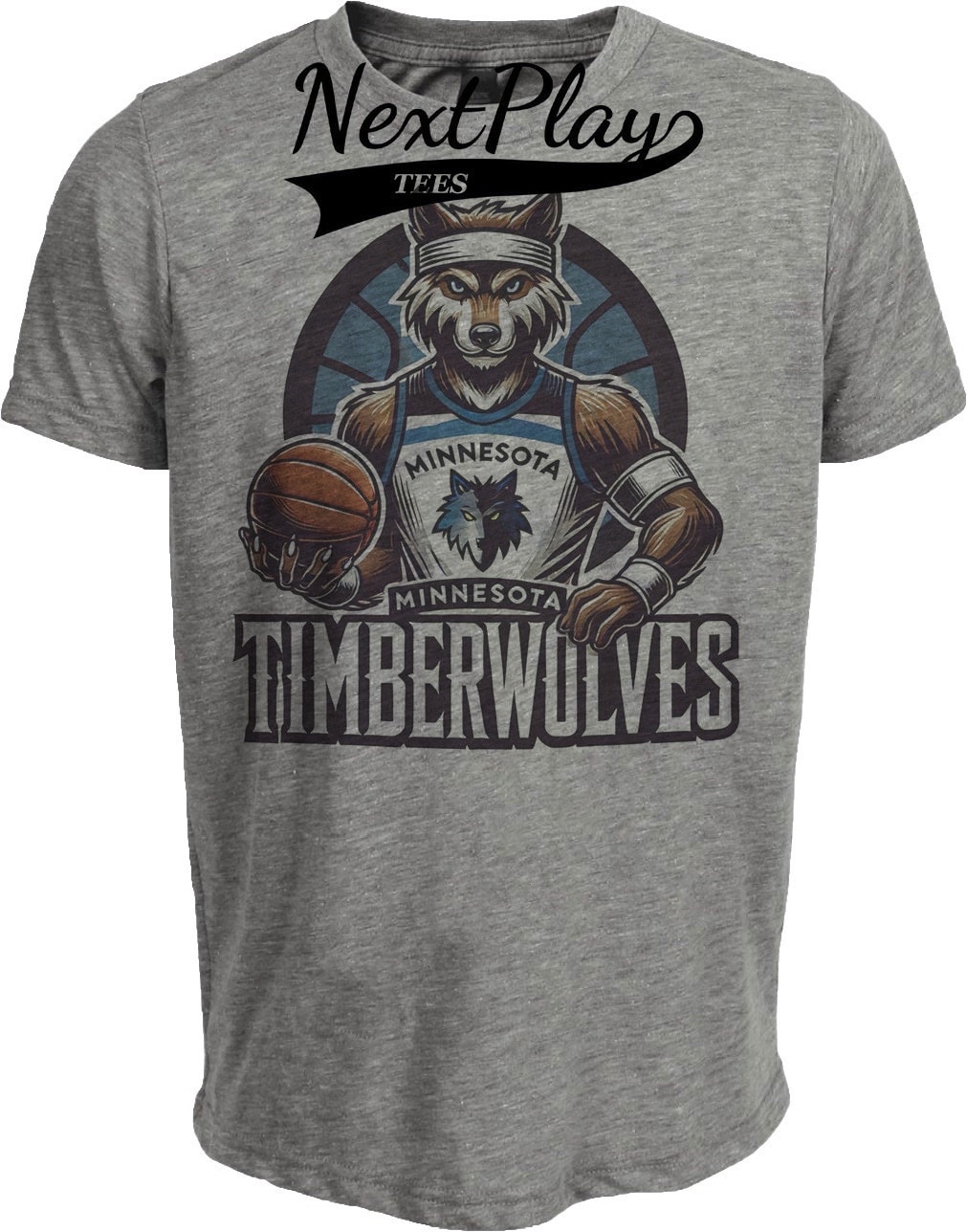 Minnesota Timberwolves Exclusive Retro Basketball Mascot Artwork Heather Gray Sublimated T-Shirt
