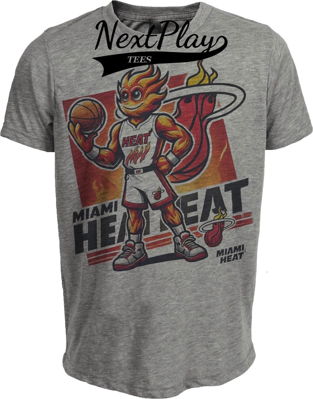 Miami Heat Exclusive Retro Basketball Mascot Artwork Heather Gray Sublimated T-Shirt
