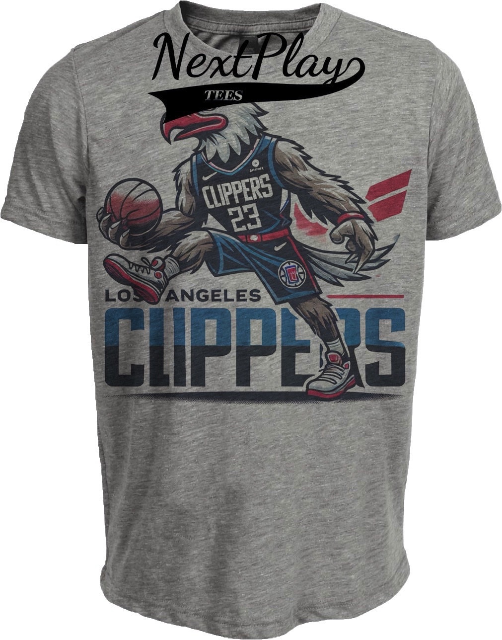 Los Angeles Clippers Exclusive Retro Basketball Mascot Artwork Heather Gray Sublimated T-Shirt