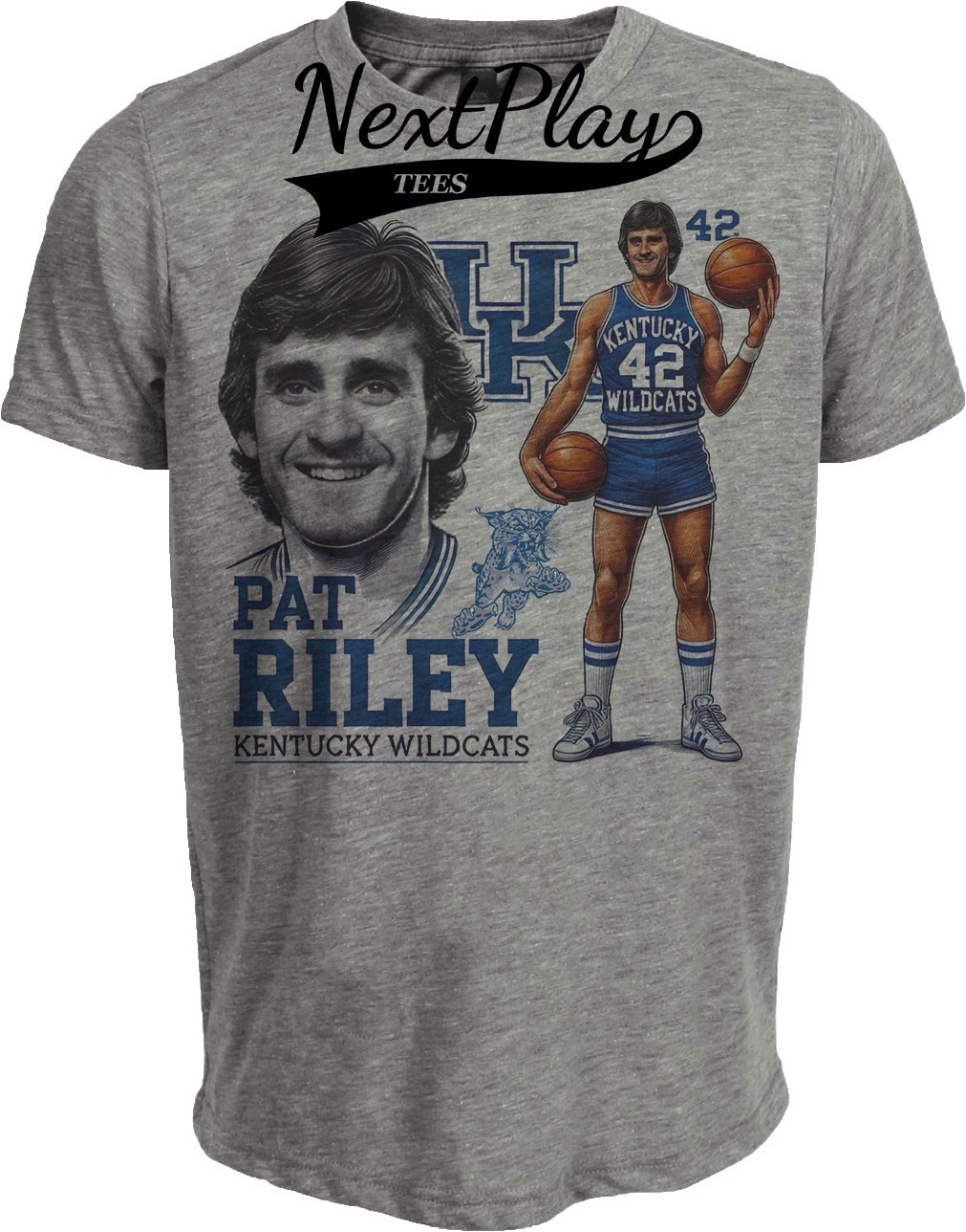 Kentucky Wildcats Pat Riley Exclusive Retro Basketball 1965 Artwork Heather Gray Sublimated T-Shirt