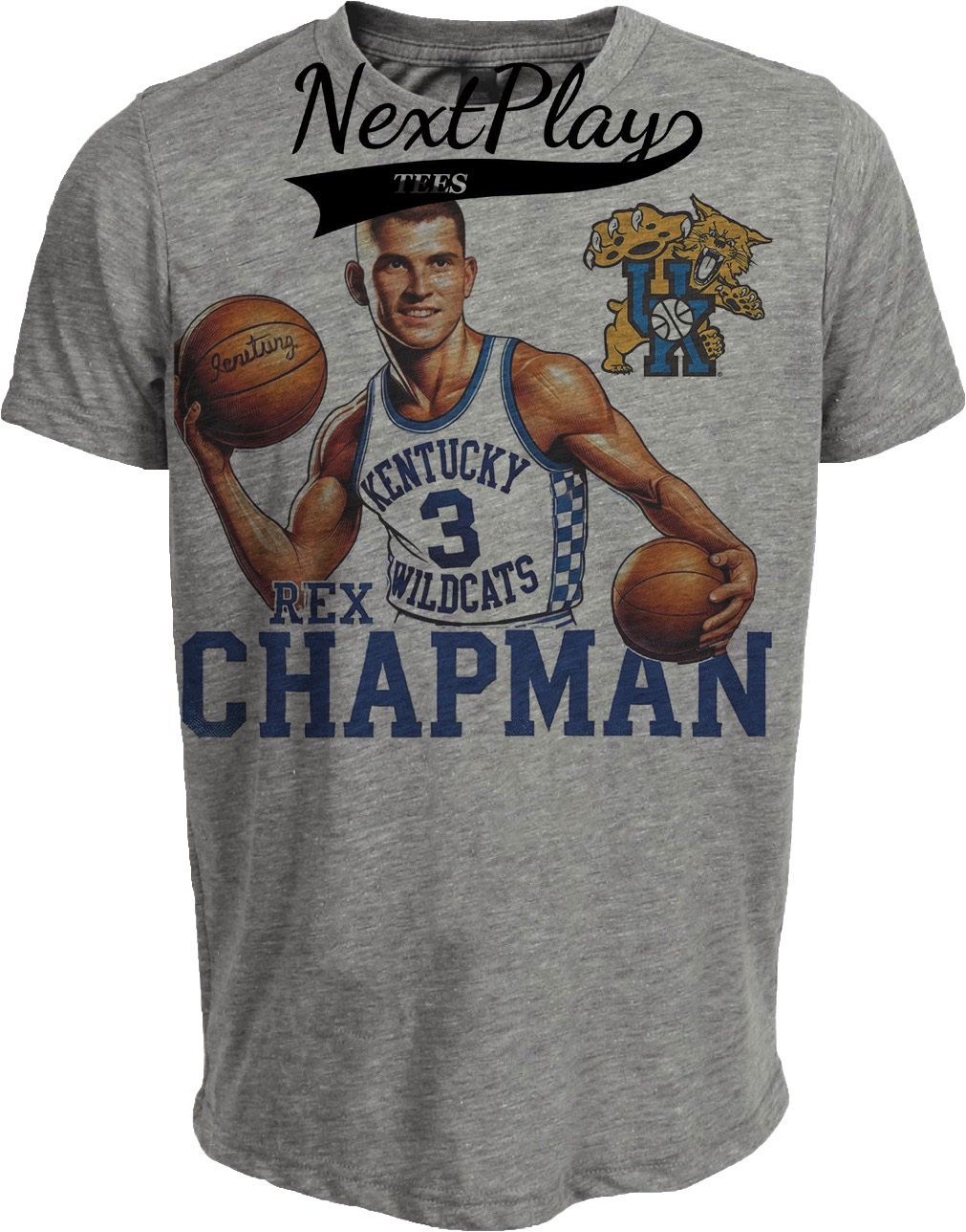 Kentucky Wildcats Rex Chapman Exclusive Retro Basketball 1986 Artwork Heather Gray Sublimated T-Shirt