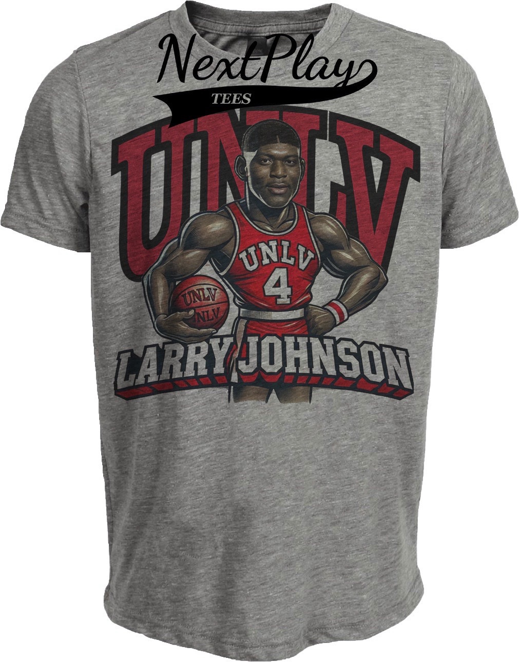 UNLV Runnin’ Rebels Larry Johnson Exclusive Retro Basketball Artwork Heather Gray Sublimated T-Shirt