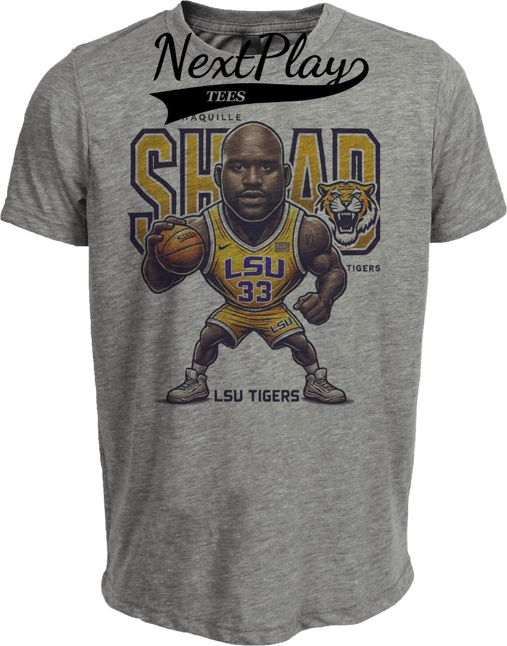 LSU Tigers Shaquille O’Neal Exclusive Retro Basketball 1989 Artwork Heather Gray Sublimated T-Shirt