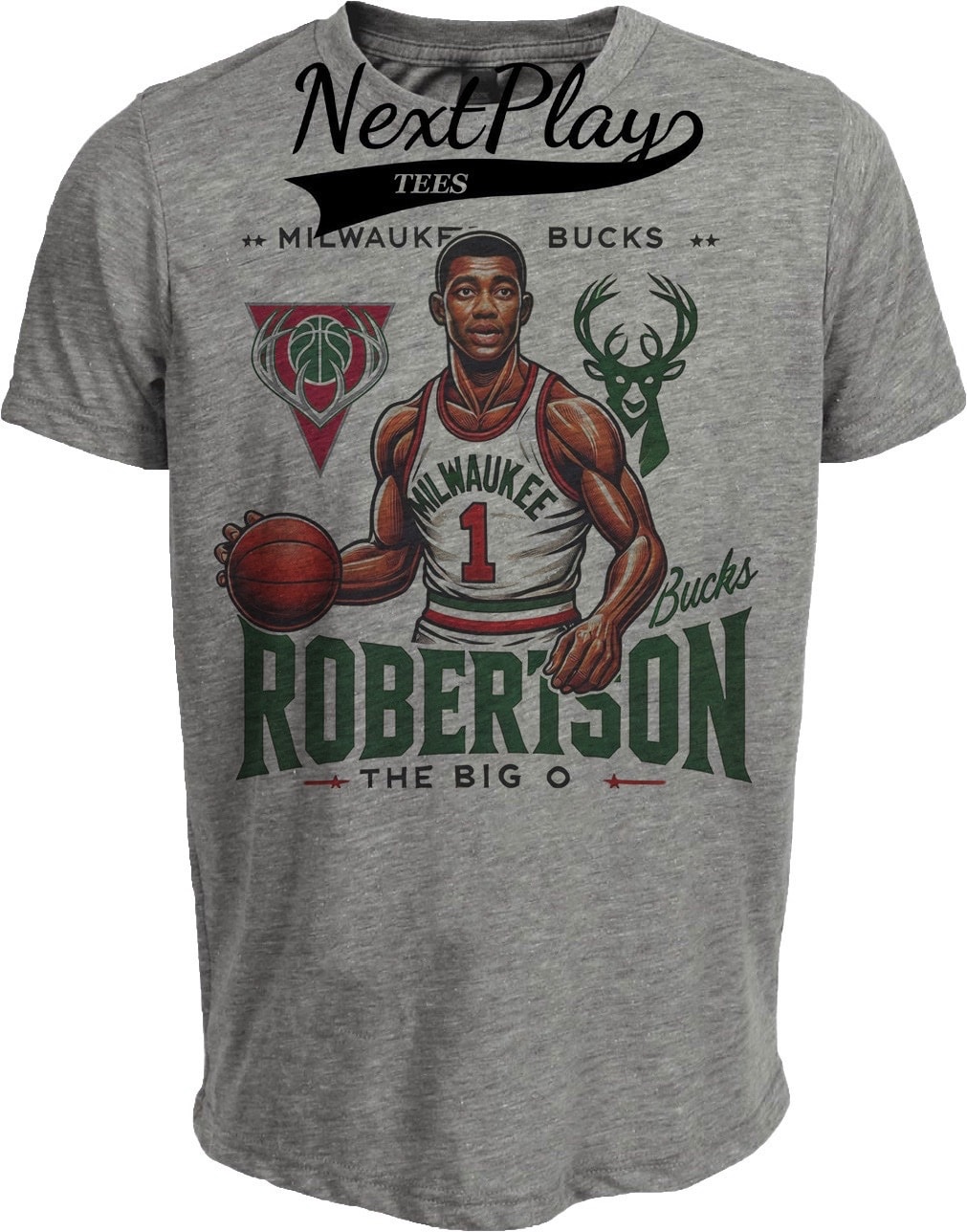 Milwaukee Bucks Oscar Robertson Exclusive Retro Basketball 1971 Artwork Heather Gray Sublimated T-Shirt