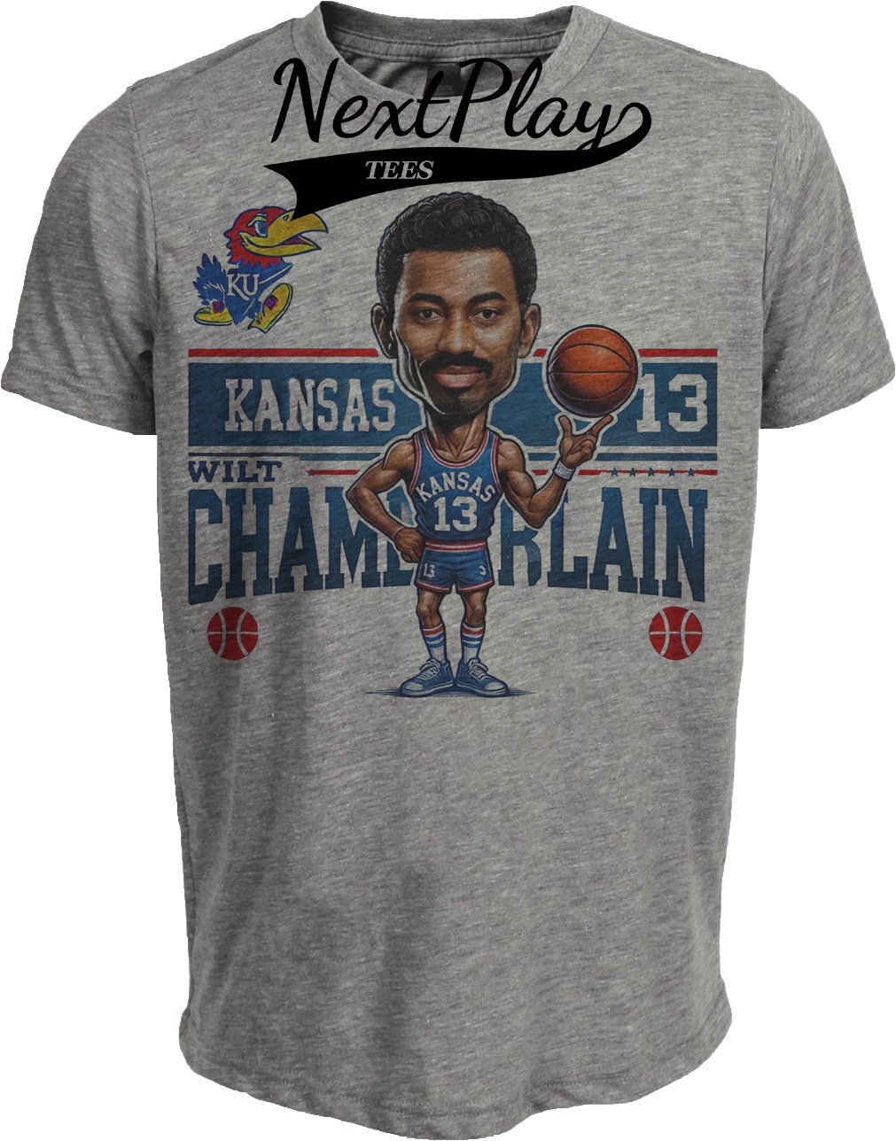 Kansas Jayhawks Wilt Chamberlain Exclusive Retro Basketball 1956 Artwork Heather Gray Sublimated T-Shirt