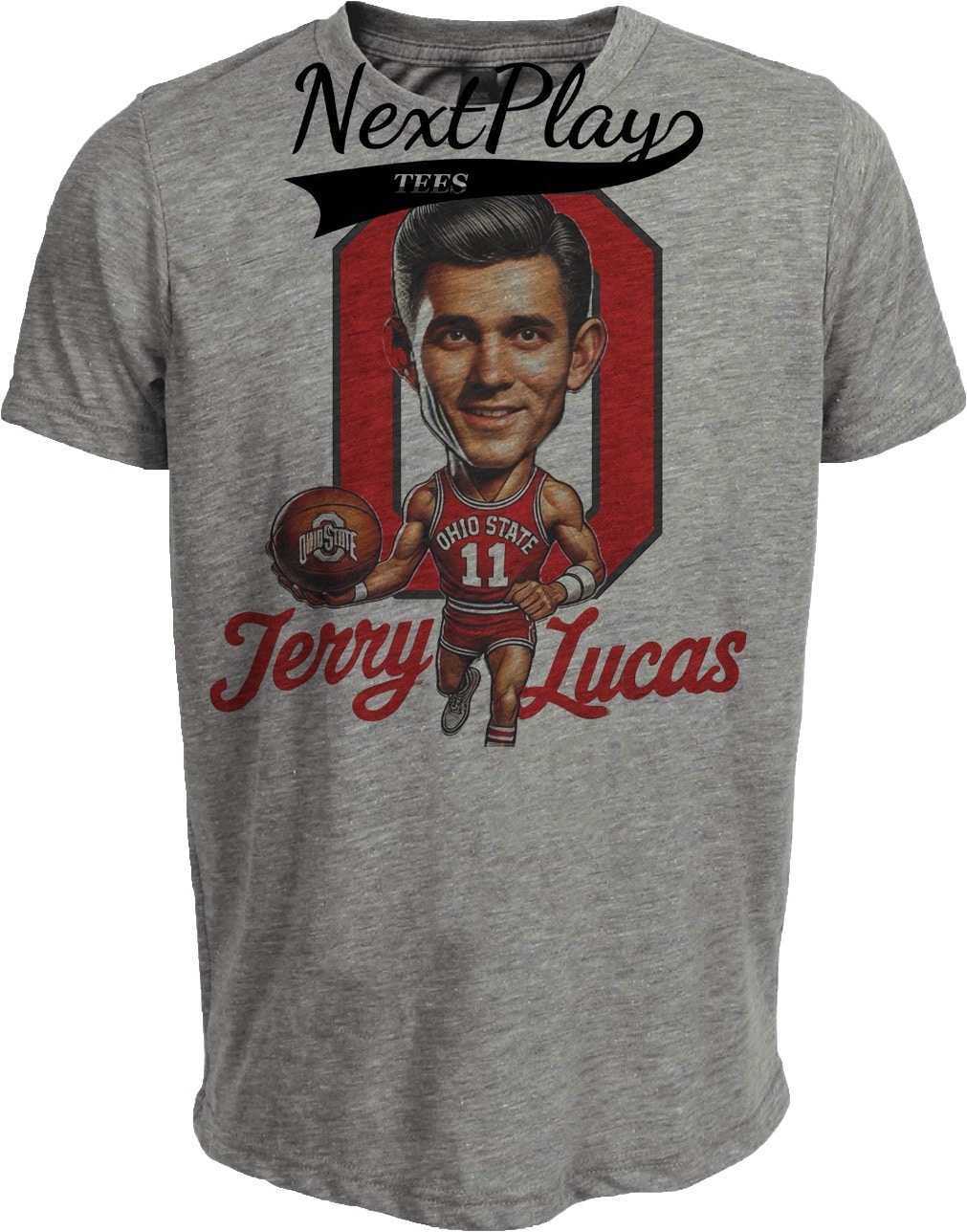 Ohio State Buckeyes Jerry Lucas Exclusive Retro Basketball 1962 Artwork Heather Gray Sublimated T-Shirt