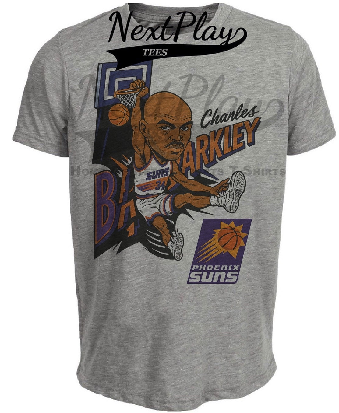 Phoenix Suns Charles Barkley Retro Basketball Dunk 1993 Artwork Heather Gray Sublimated T-Shirt