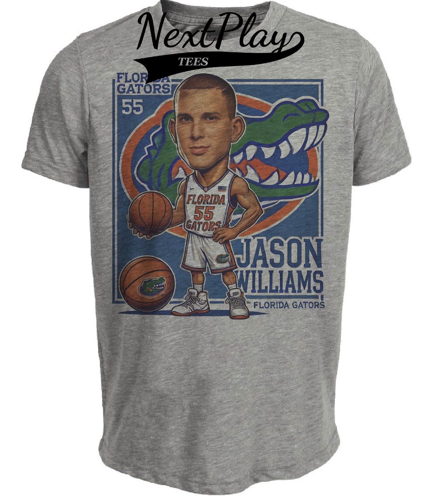 Florida Gators Jason Williams Exclusive Retro Basketball 1998 Artwork Heather Gray Sublimated T-Shirt