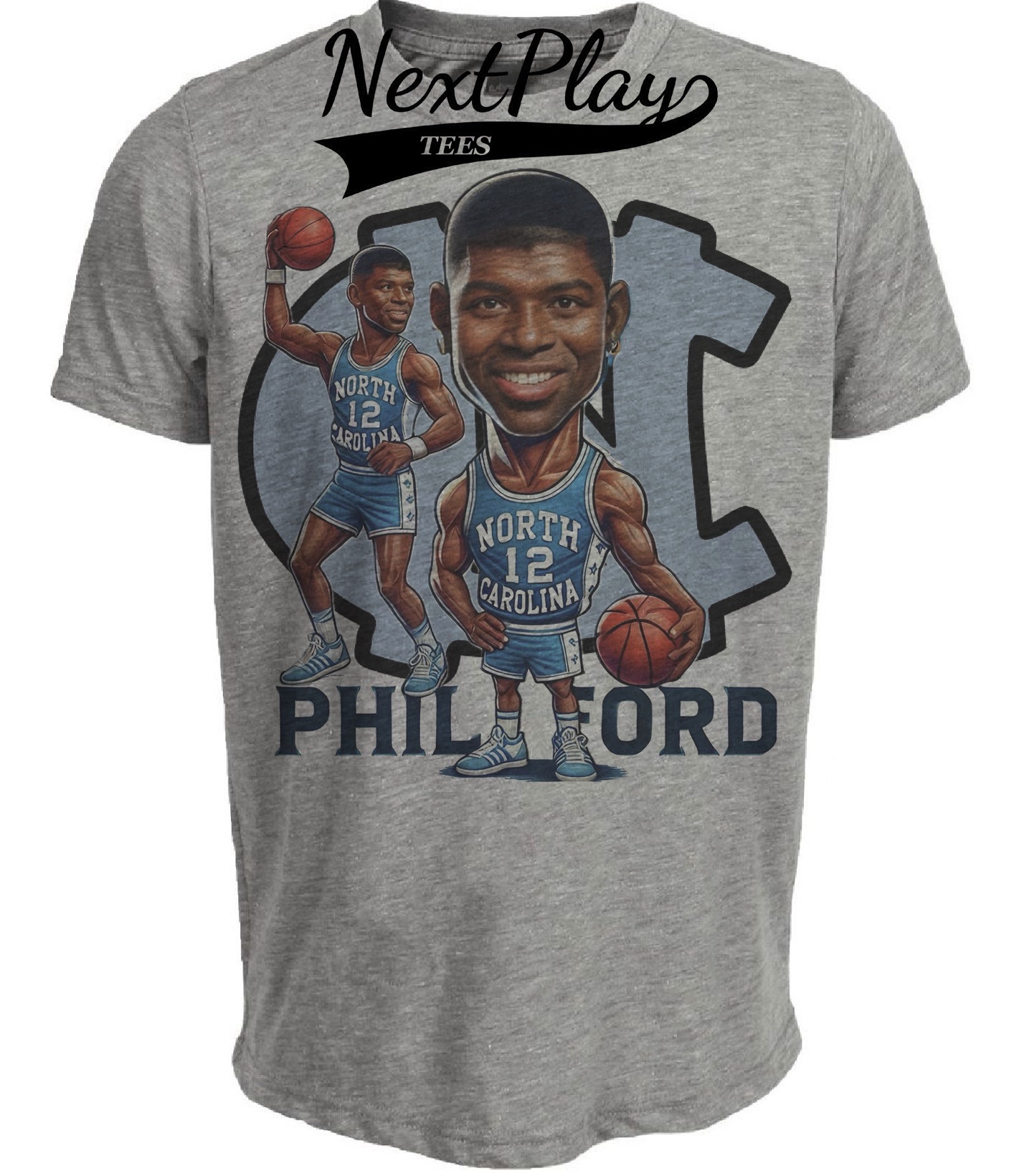 North Carolina Tar Heels Phil Ford Exclusive Retro Basketball 1975 Artwork Heather Gray Sublimated T-Shirt