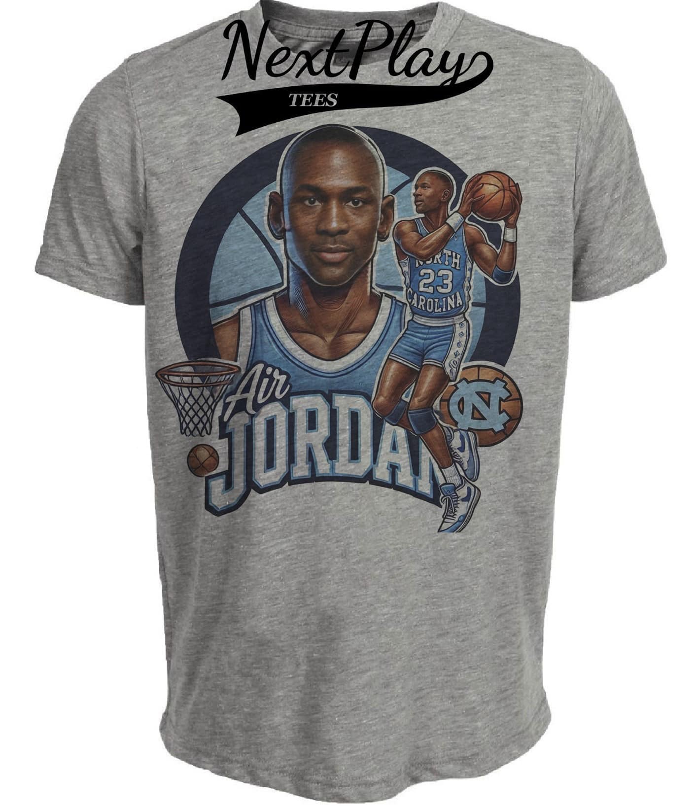 North Carolina Tar Heels Michael Jordan Exclusive Retro Basketball 1982 Artwork Heather Gray Sublimated T-Shirt