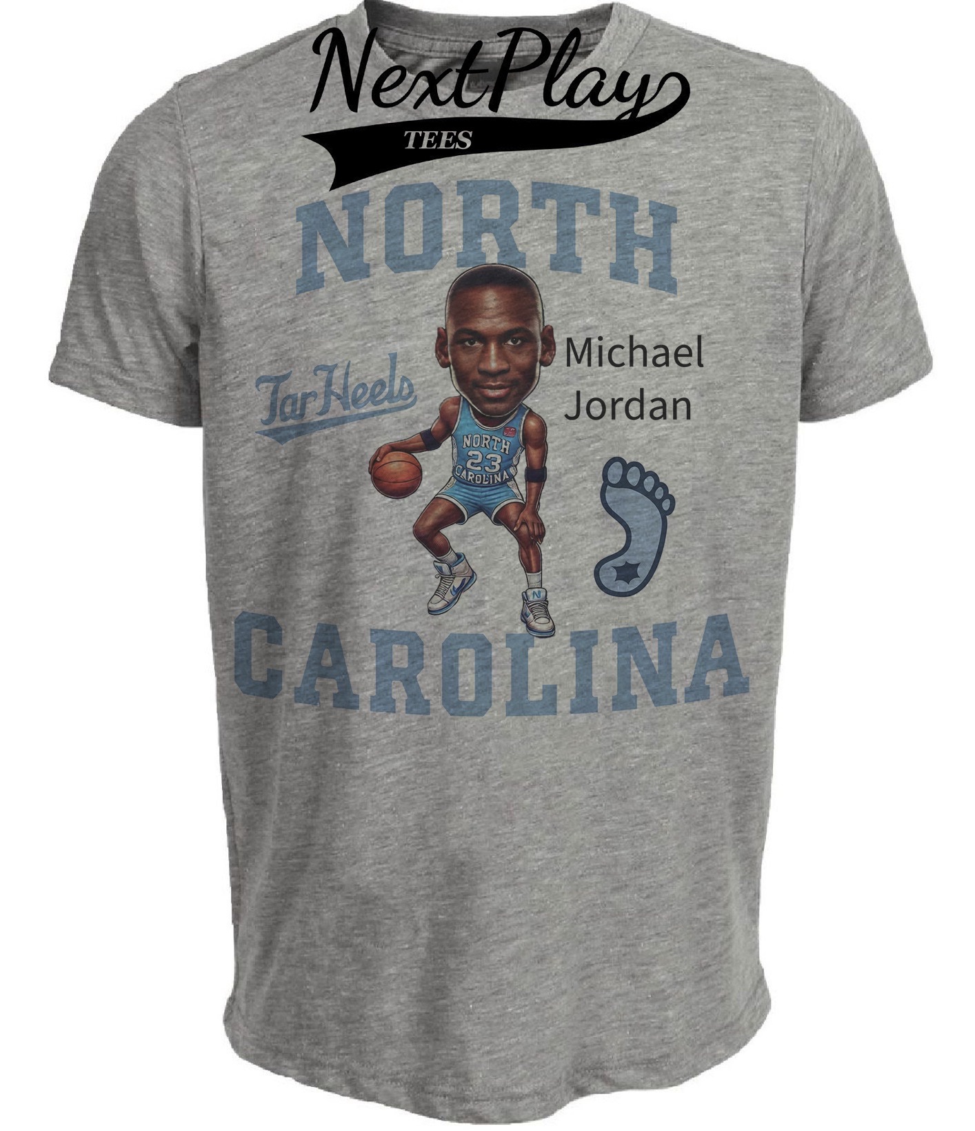North Carolina Tar Heels Michael Jordan Exclusive Retro Basketball 1983 Artwork Heather Gray Sublimated T-Shirt