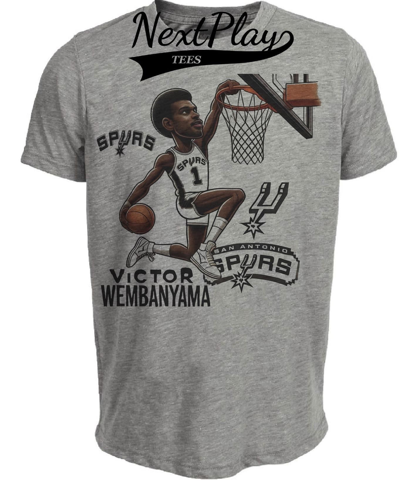 San Antonio Spurs Victor Wembanyama Exclusive Retro Basketball Dunk Artwork Heather Gray Sublimated T-Shirt