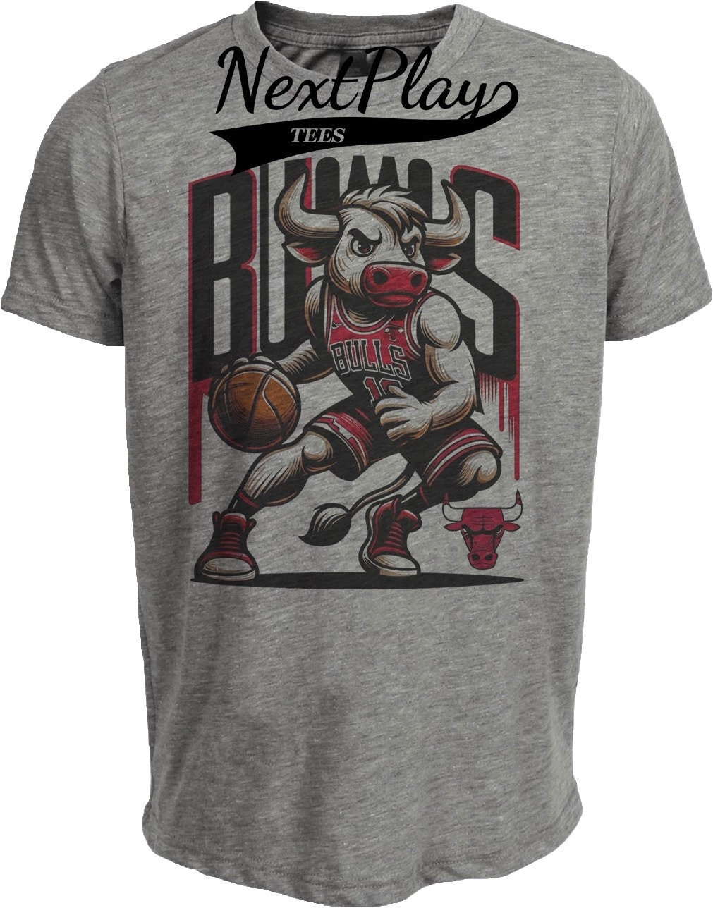 Chicago Bulls Exclusive Retro Basketball Mascot Artwork Heather Gray Sublimated T-Shirt