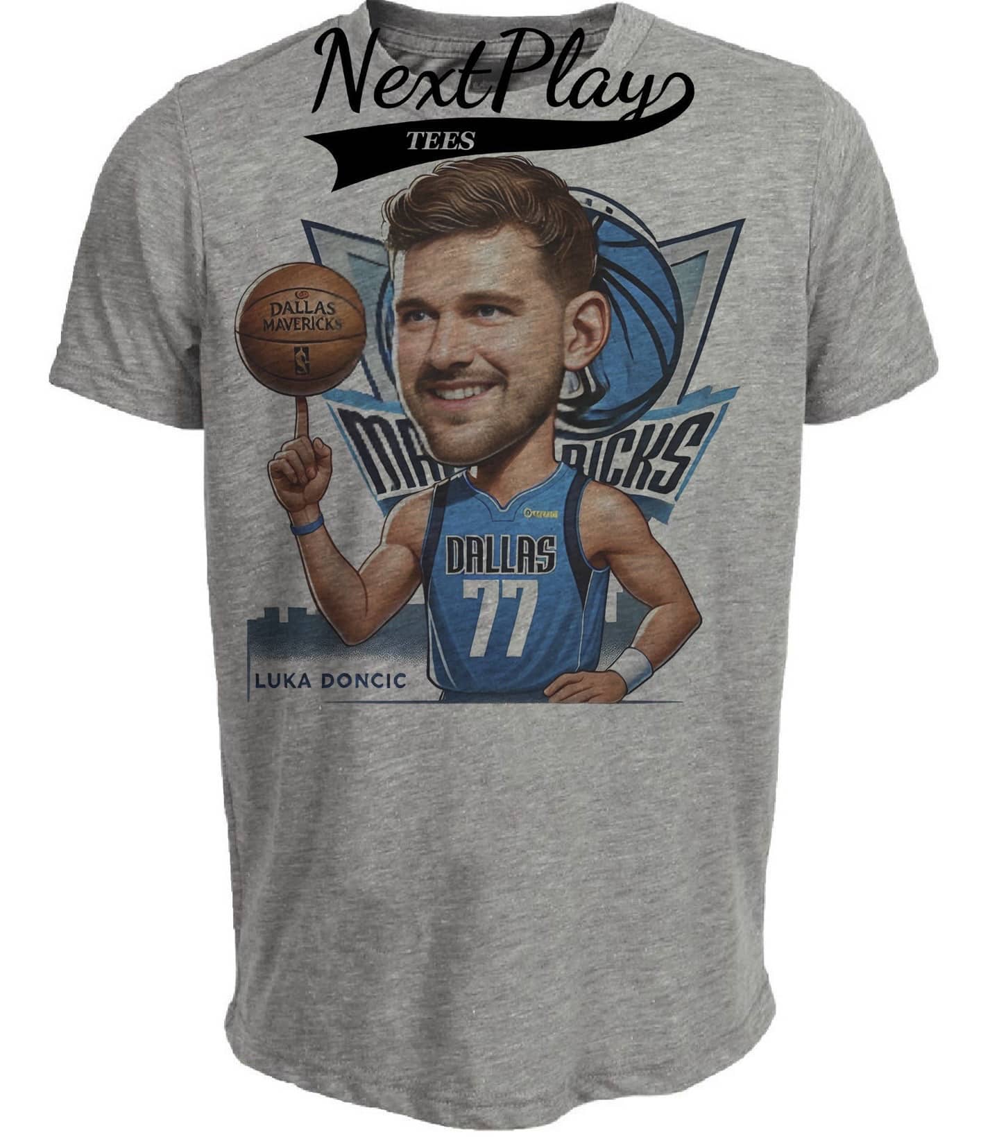 Dallas Mavericks Mavs Luka Doncic Exclusive Retro Spinning Basketball Artwork Heather Gray Sublimated T-Shirt