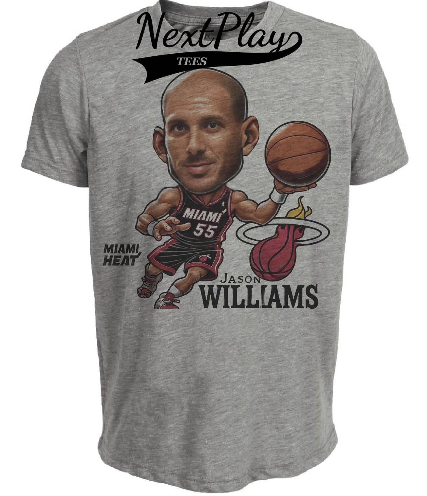 Miami Heat Jason Williams Exclusive Retro Basketball Artwork Heather Gray Sublimated T-Shirt