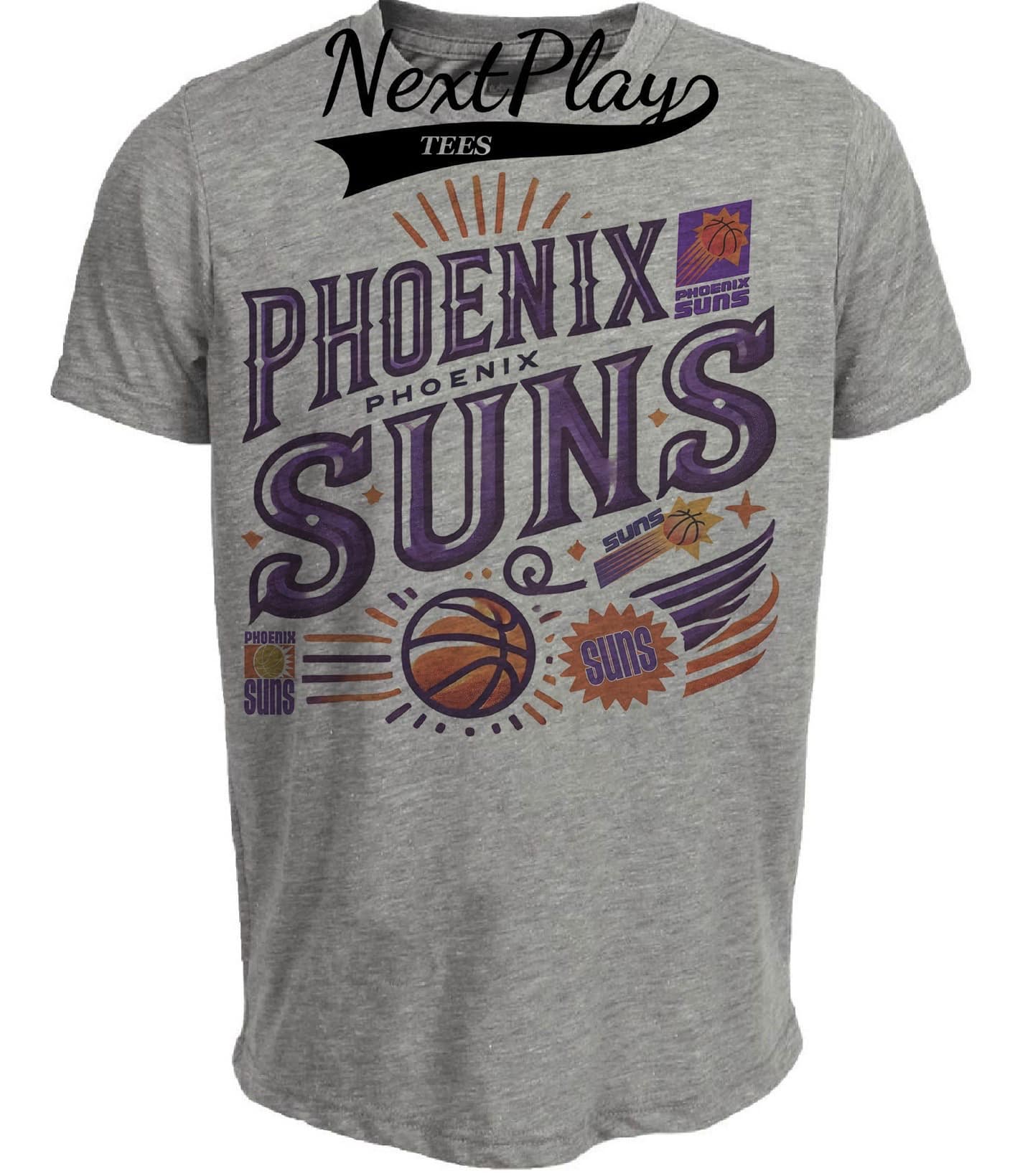 Phoenix Suns Exclusive Retro Pro Basketball Artwork Heather Gray Sublimated T-Shirt