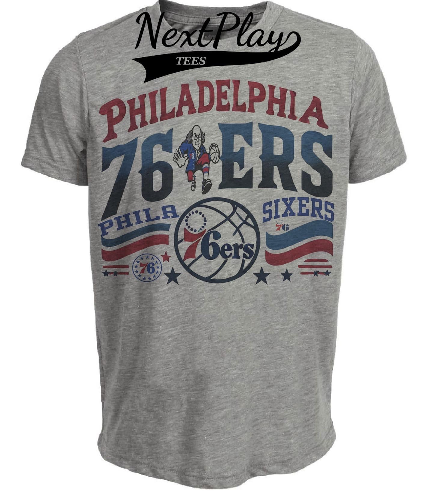 Philadelphia 76ers Exclusive Retro Pro Basketball Artwork Heather Gray Sublimated T-Shirt
