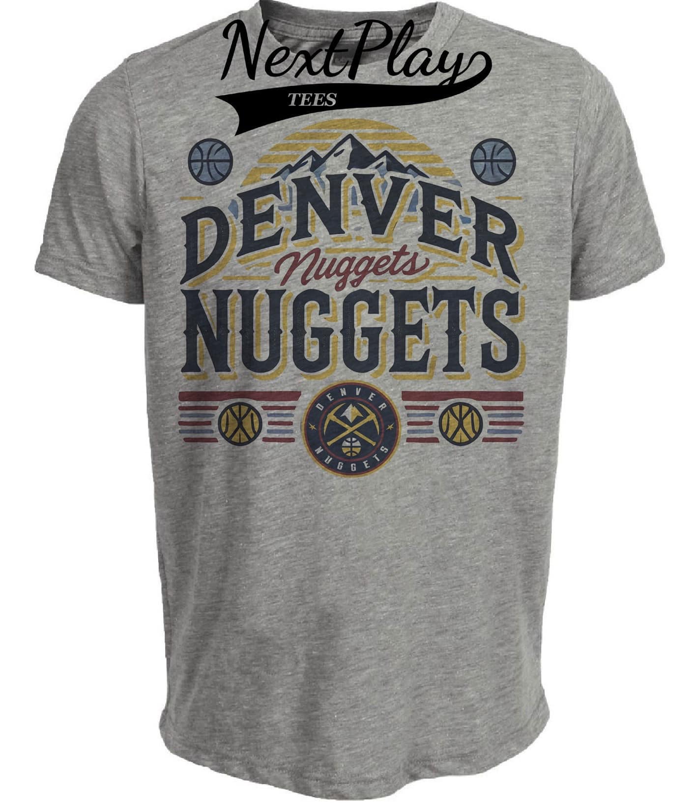 Denver Nuggets Exclusive Retro Pro Basketball Artwork Heather Gray Sublimated T-Shirt