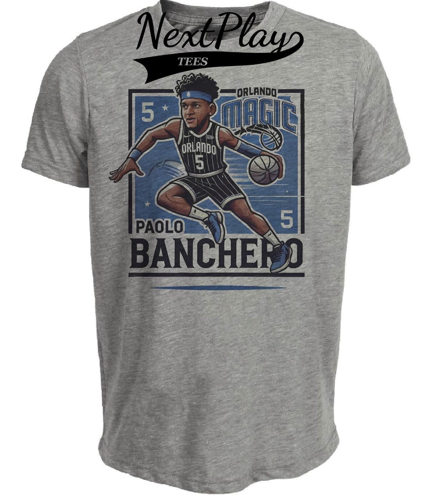 Orlando Magic Paolo Banchero Exclusive Retro Basketball Artwork Heather Gray Sublimated T-Shirt