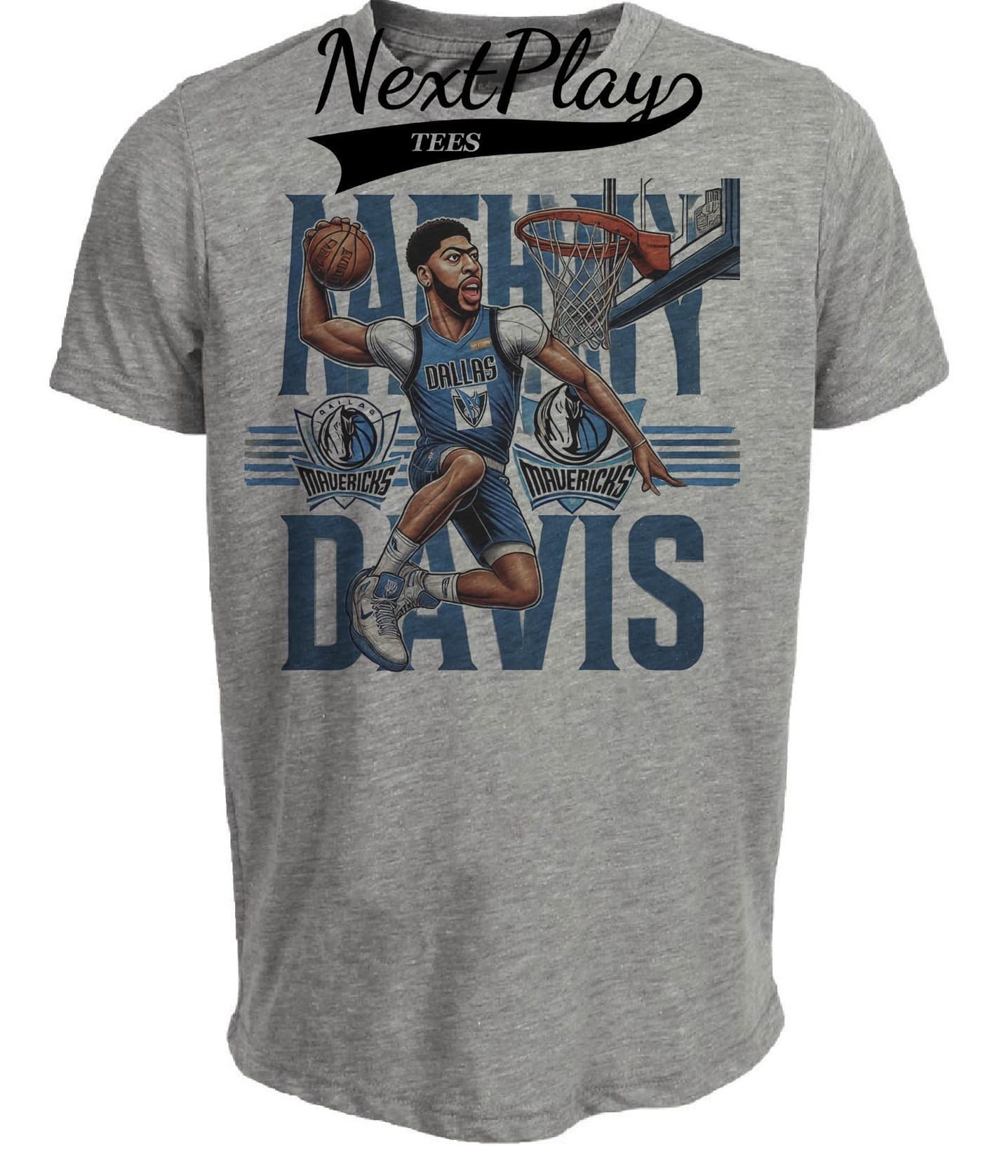Dallas Mavericks Anthony Davis Exclusive Retro Basketball Dunk Artwork Heather Gray Sublimated T-Shirt