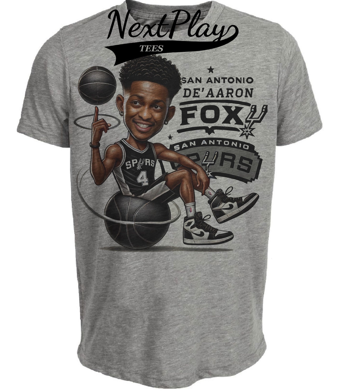 San Antonio Spurs De’Aaron Fox Exclusive Retro Basketball Artwork Heather Gray Sublimated T-Shirt