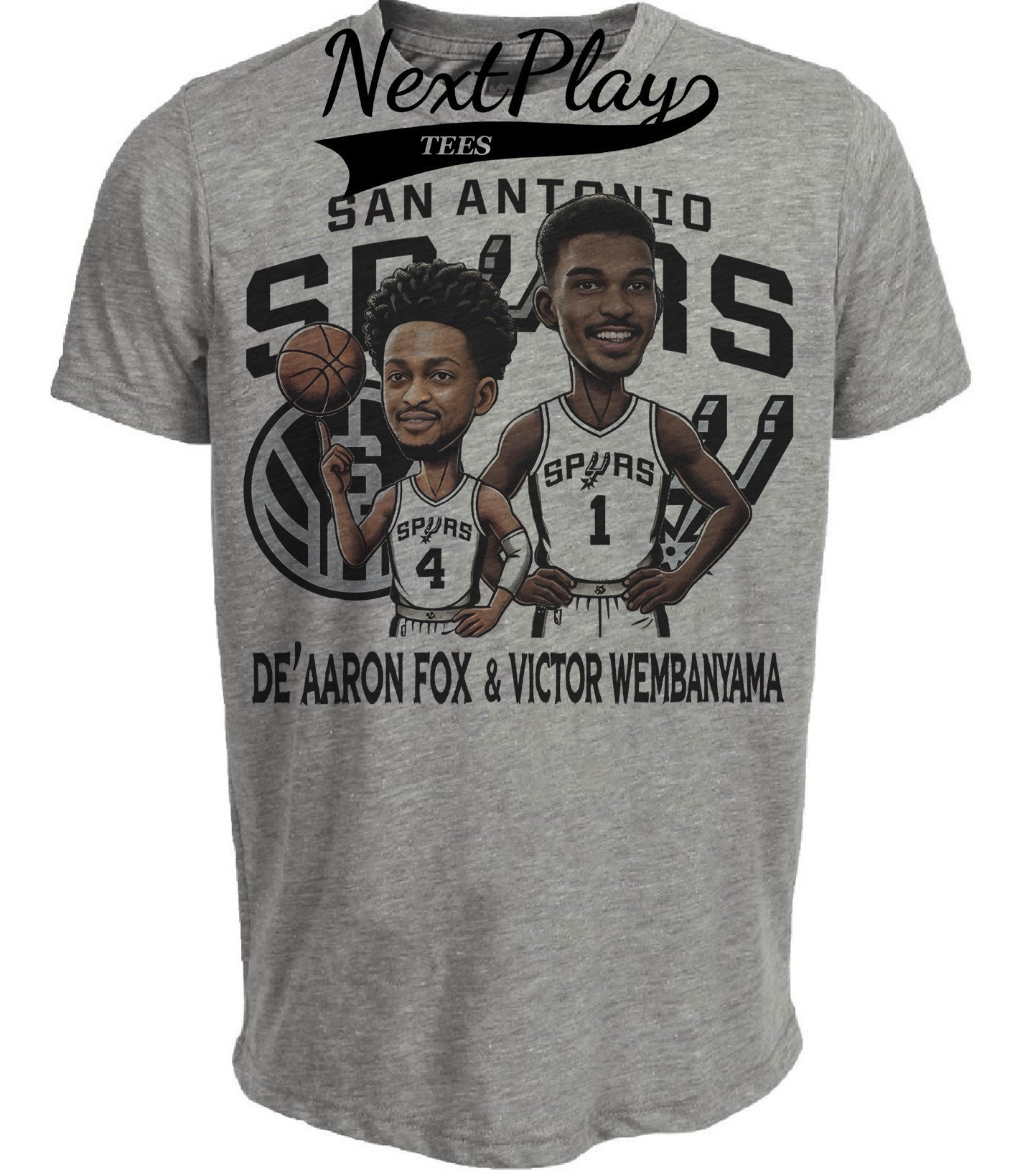 San Antonio Spurs De’Aaron Fox & Victor Wembanyama Exclusive Retro Basketball Artwork Heather Gray Sublimated T-Shirt