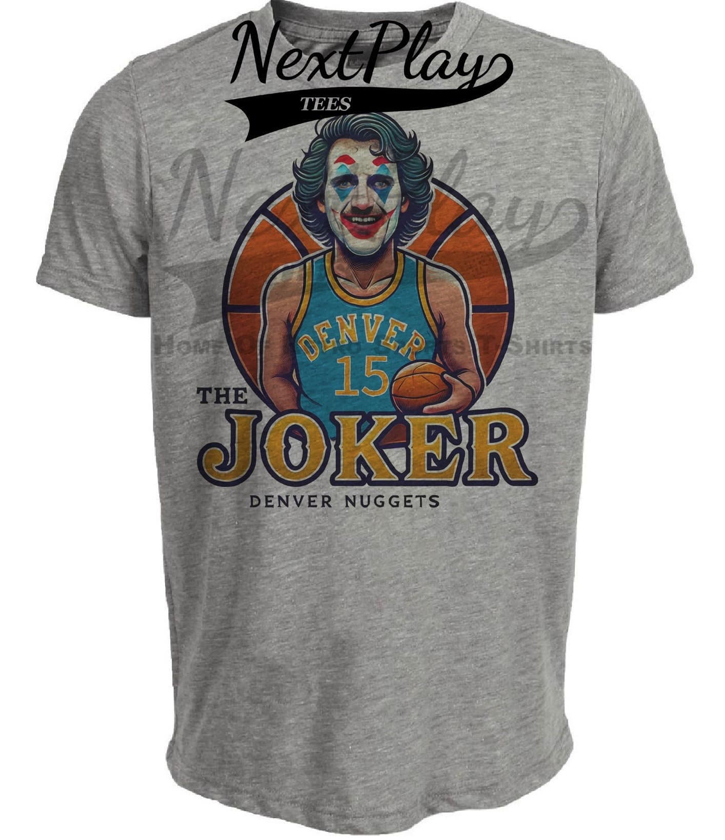 Denver Nuggets Nikola Jokic The Joker Exclusive Retro Basketball Artwork Heather Gray Sublimated T-Shirt