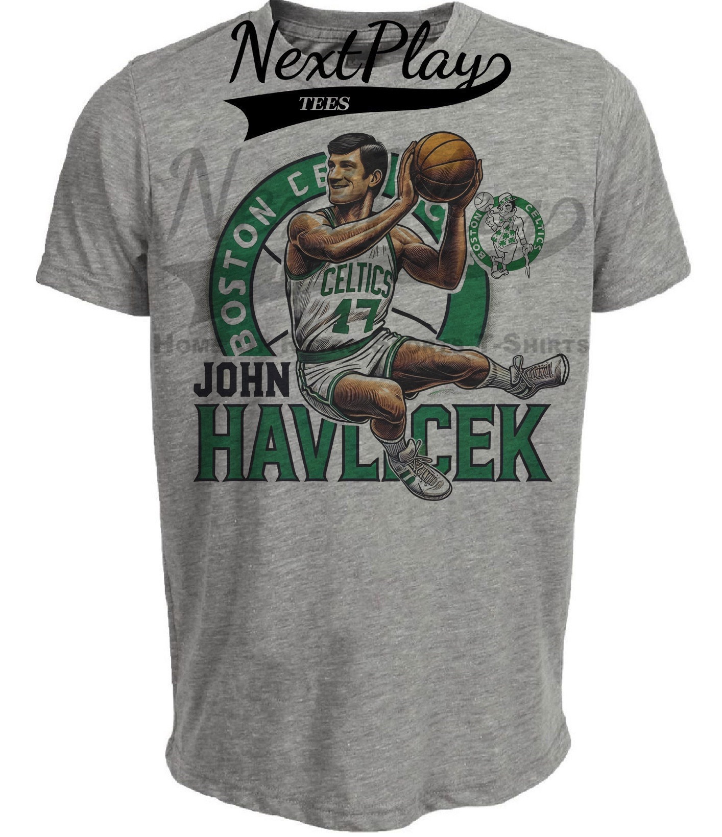 Boston Celtics John Havlicek Exclusive Retro Basketball Artwork Heather Gray Sublimated T-Shirt