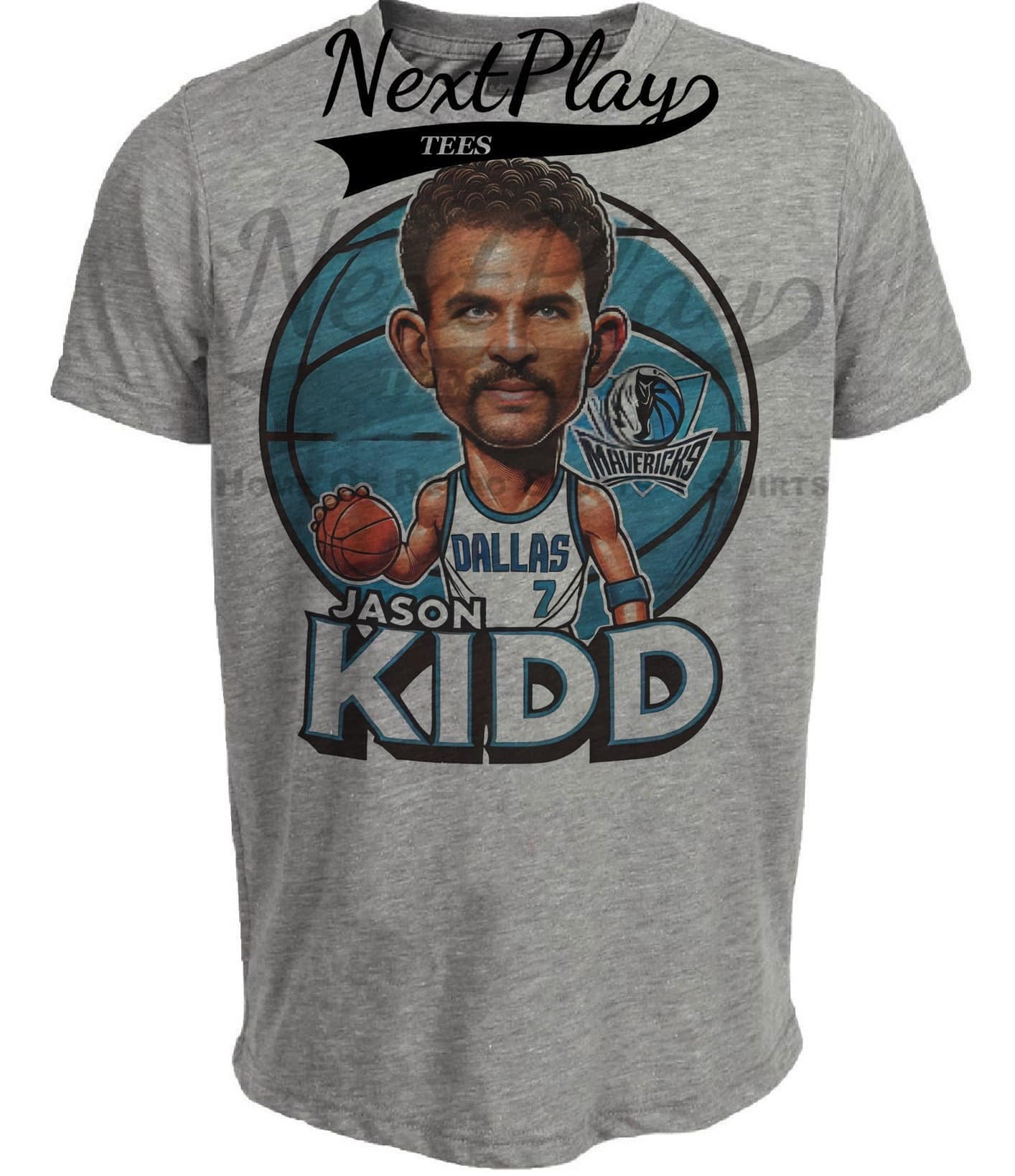 Dallas Mavericks Jason Kidd Exclusive Retro Basketball Artwork Heather Gray Sublimated T-Shirt