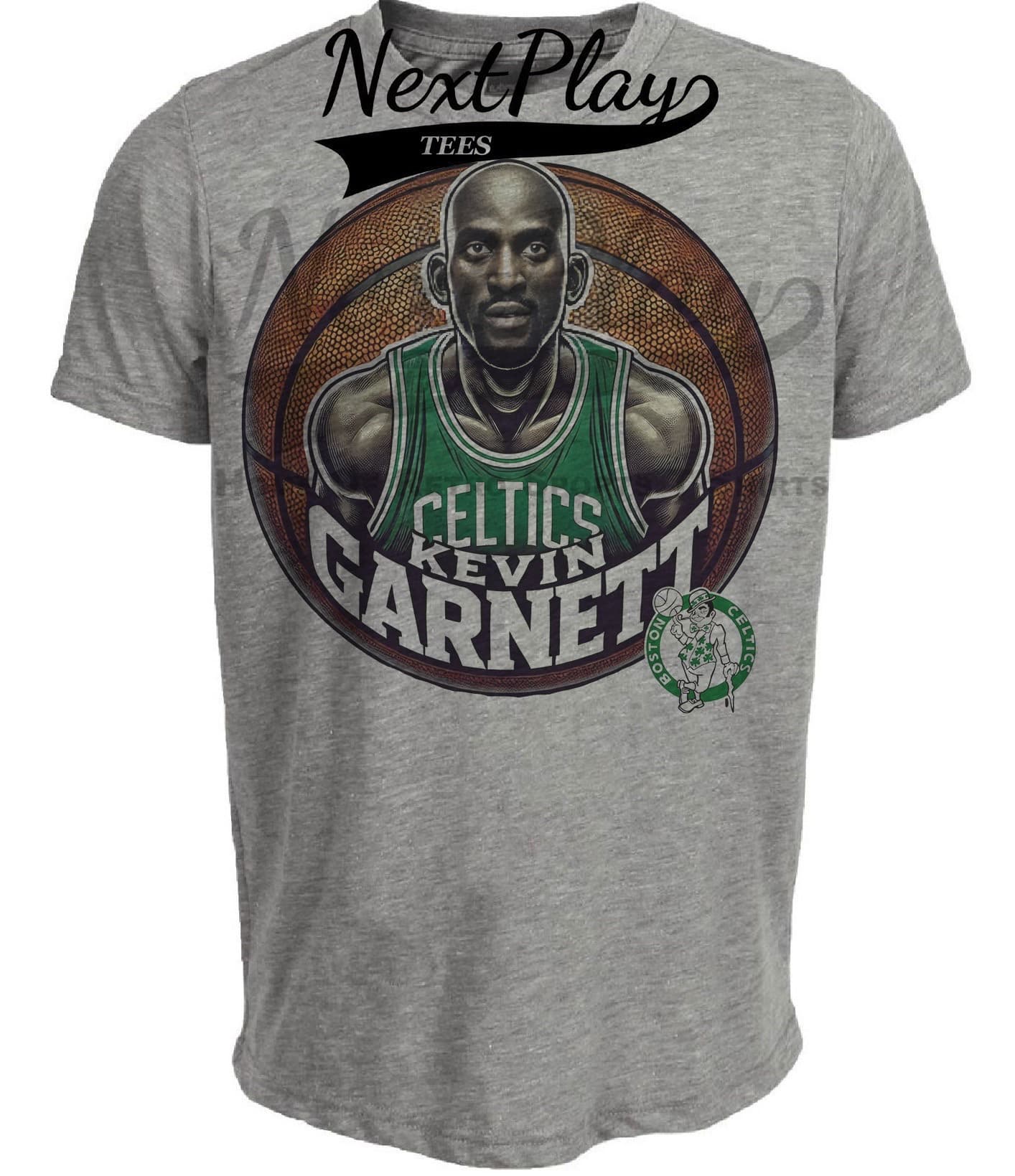 Boston Celtics Kevin Garnett Exclusive Retro Basketball Artwork Heather Gray Sublimated T-Shirt