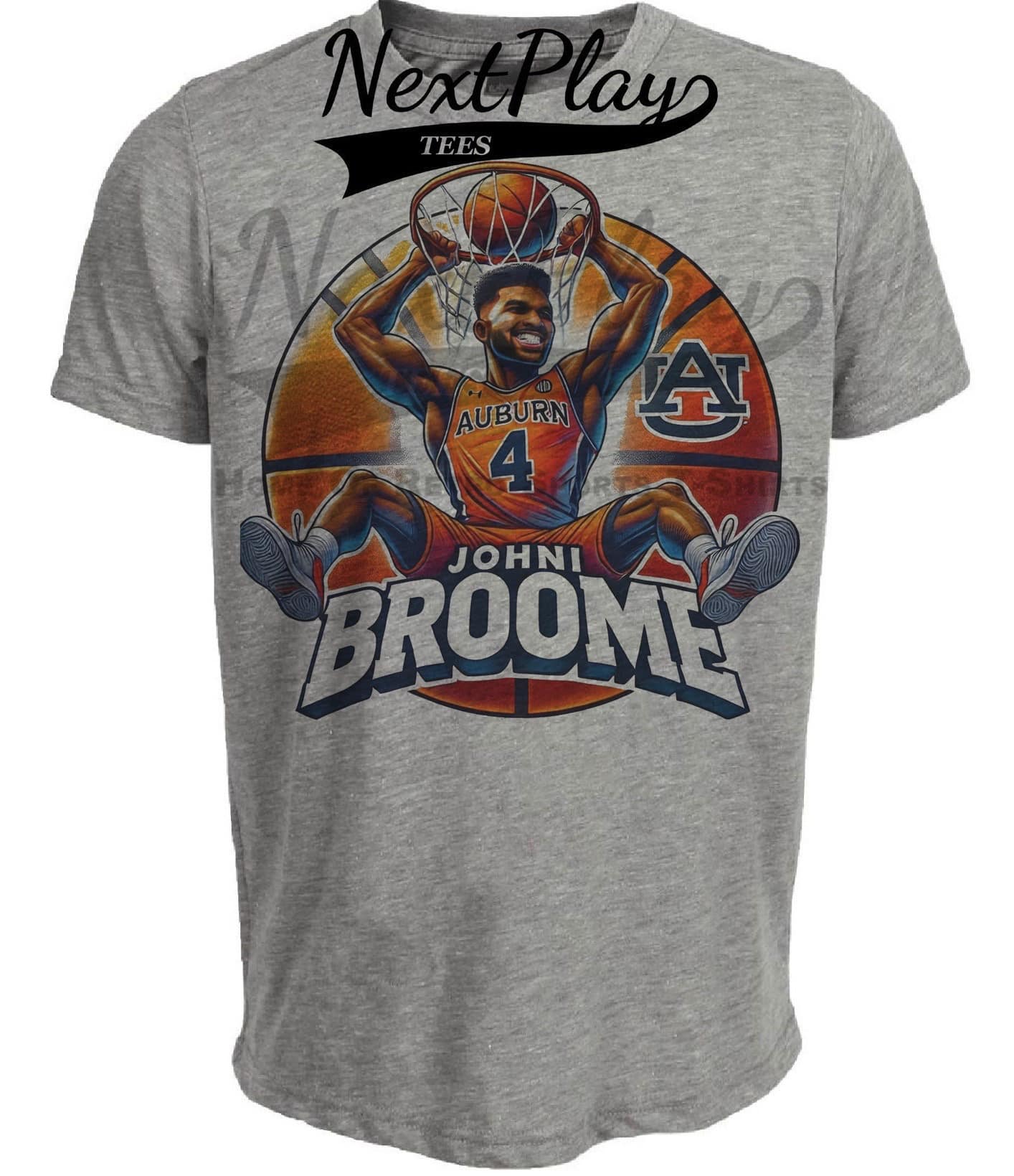 Auburn Tigers Johni Broome Exclusive Retro Basketball Artwork Heather Gray Sublimated T-Shirt