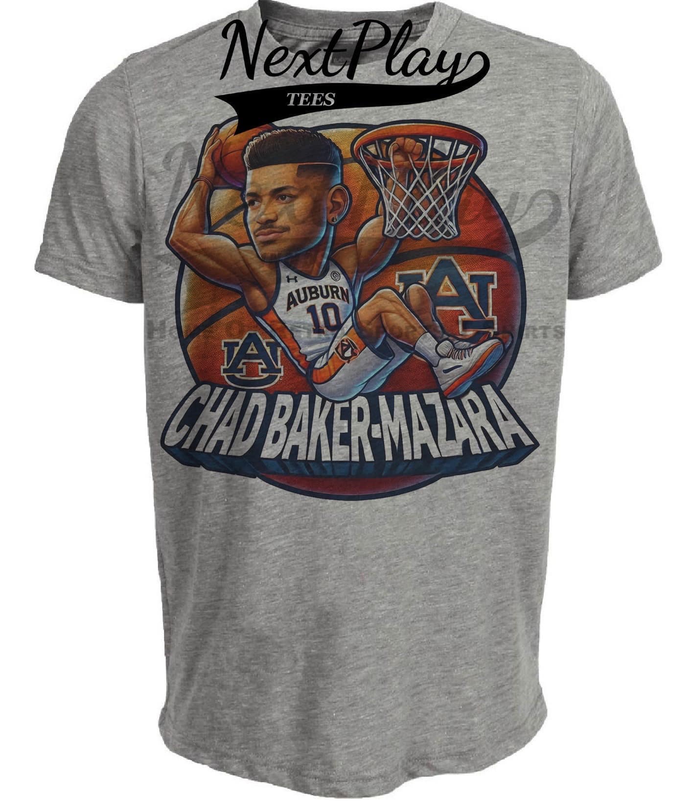 Auburn Tigers Chad Baker-Mazara Exclusive Retro Basketball Artwork Heather Gray Sublimated T-Shirt