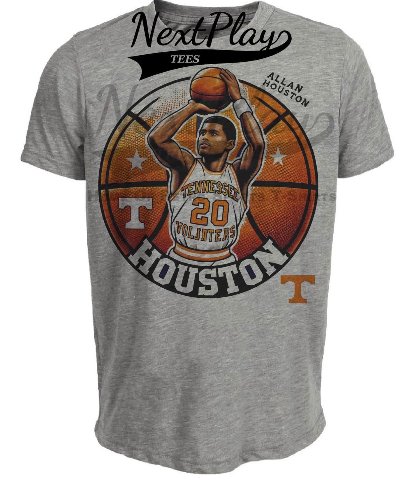 Tennessee Volunteers Allan Houston Exclusive Retro March Madness Basketball Artwork Heather Gray Sublimated T-Shirt