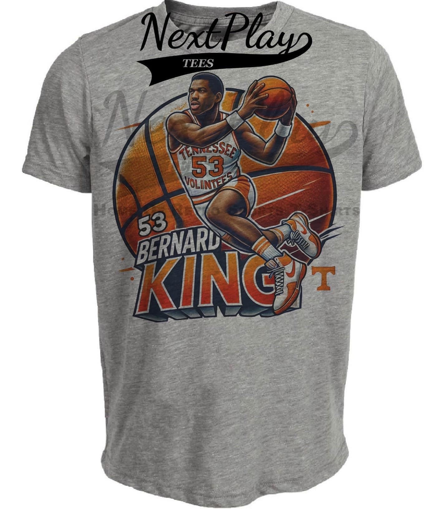 Tennessee Volunteers Bernard King Exclusive Retro March Madness Basketball Artwork Heather Gray Sublimated T-Shirt