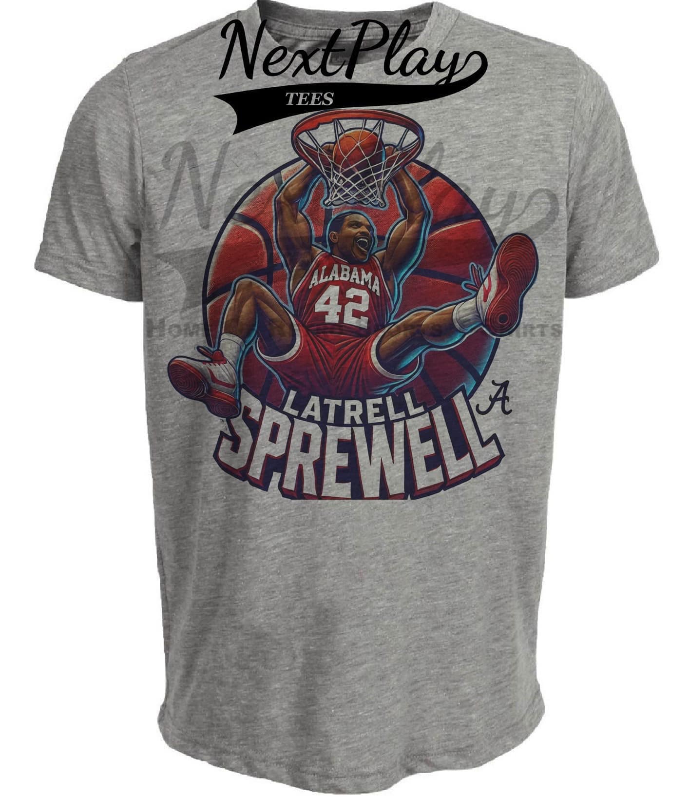 Alabama Crimson Tide Latrell Sprewell Exclusive Retro March Madness Basketball Artwork Heather Gray Sublimated T-Shirt