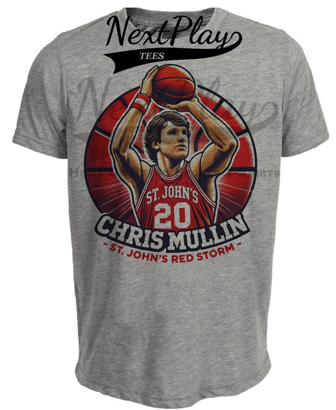 St. John’s Red Storm Redmen Chris Mullin Exclusive Retro March Madness Basketball Artwork Heather Gray Sublimated T-Shirt