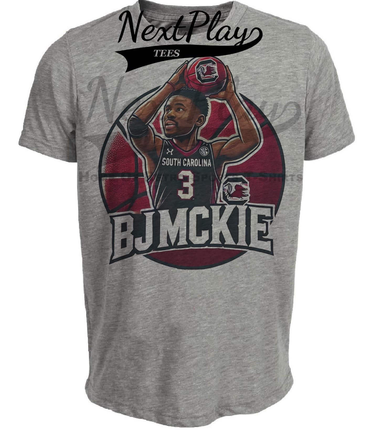 South Carolina Gamecocks BJ McKie Exclusive Retro March Madness Basketball Artwork Heather Gray Sublimated T-Shirt