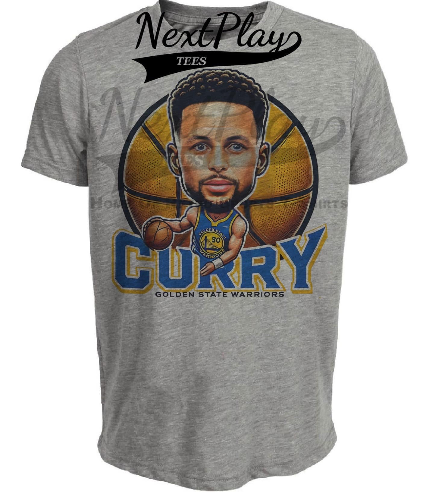 Golden State Warriors Steph Curry Bay City Exclusive Retro Basketball Artwork Heather Gray Sublimated T-Shirt