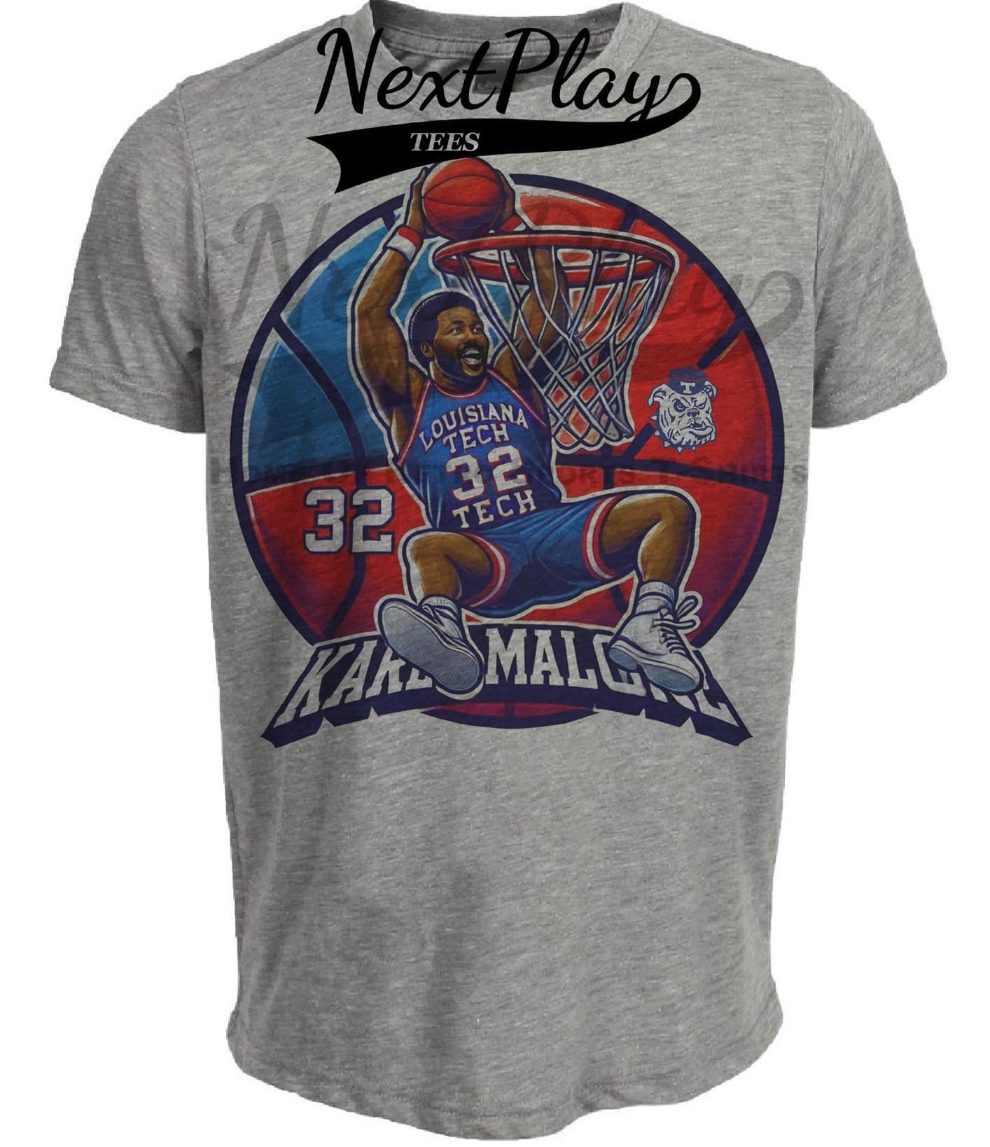 Louisiana Tech Bulldogs Karl Malone Exclusive Retro March Madness Basketball Artwork Heather Gray Sublimated T-Shirt