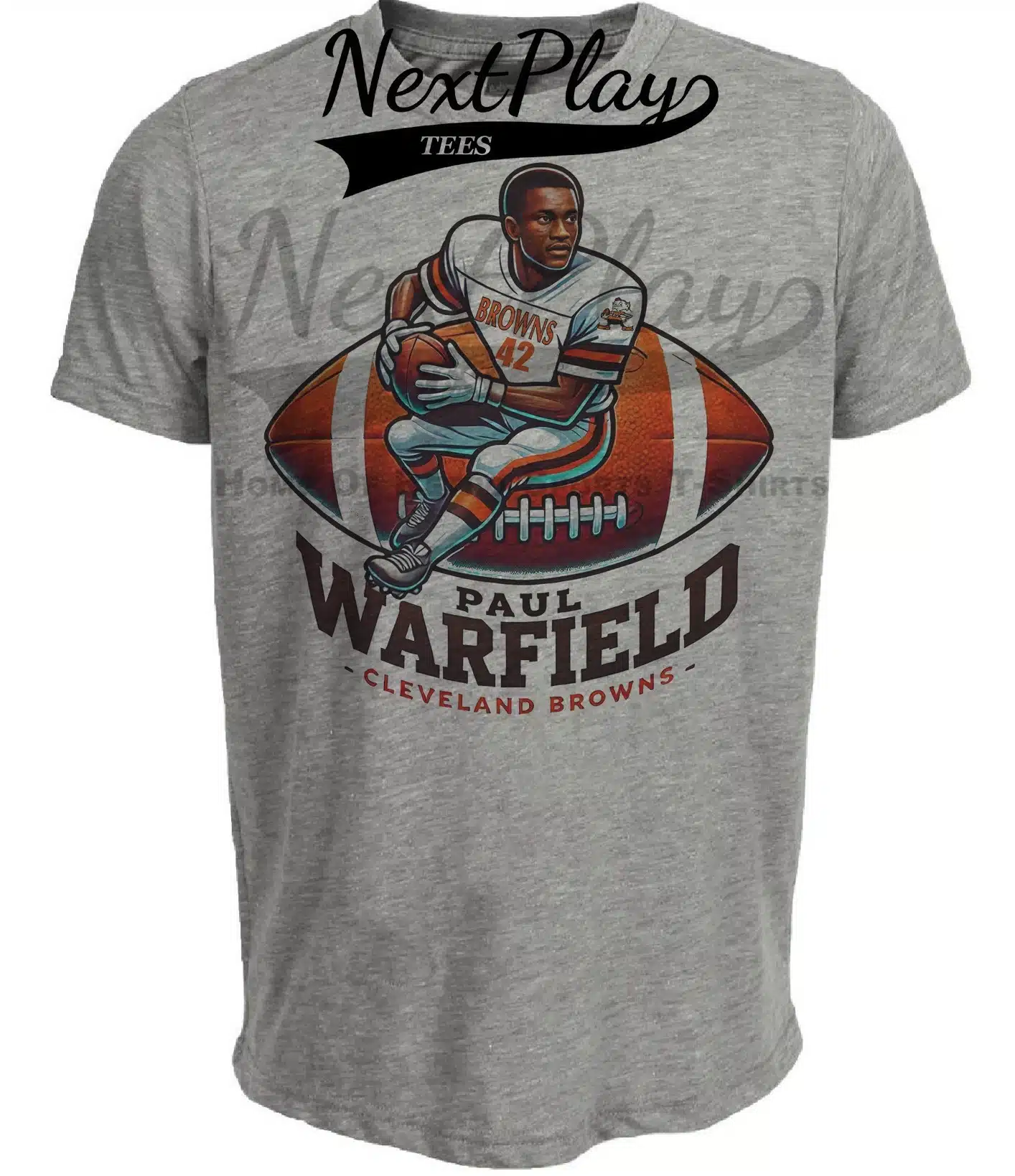 Cleveland Browns Paul Warfield Exclusive Retro Football Artwork Heather Gray Sublimated T-Shirt