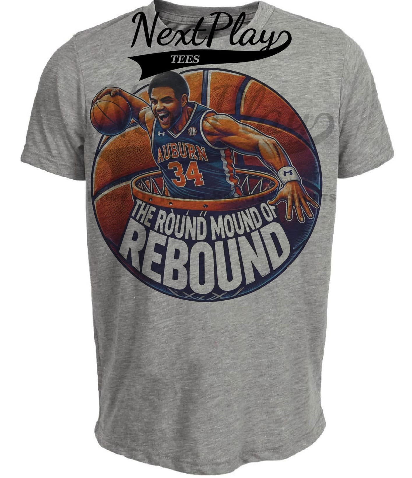 Auburn Tigers Charles Barkley Round Mound Of Rebound Exclusive Retro March Madness Basketball Artwork Heather Gray Sublimated T-Shirt