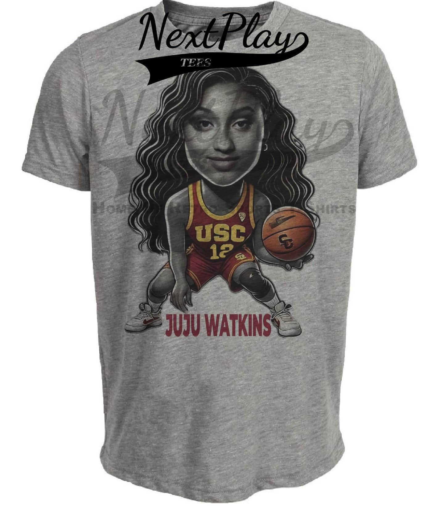 USC Trojans JuJu Watkins Exclusive Retro March Madness Basketball Artwork Heather Gray Sublimated T-Shirt