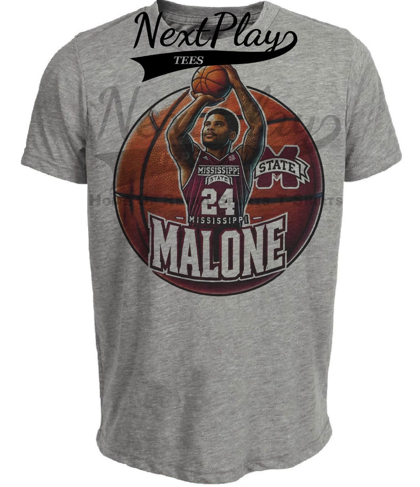 Mississippi State Bulldogs Jeff Malone Exclusive Retro March Madness Basketball Artwork Heather Gray Sublimated T-Shirt