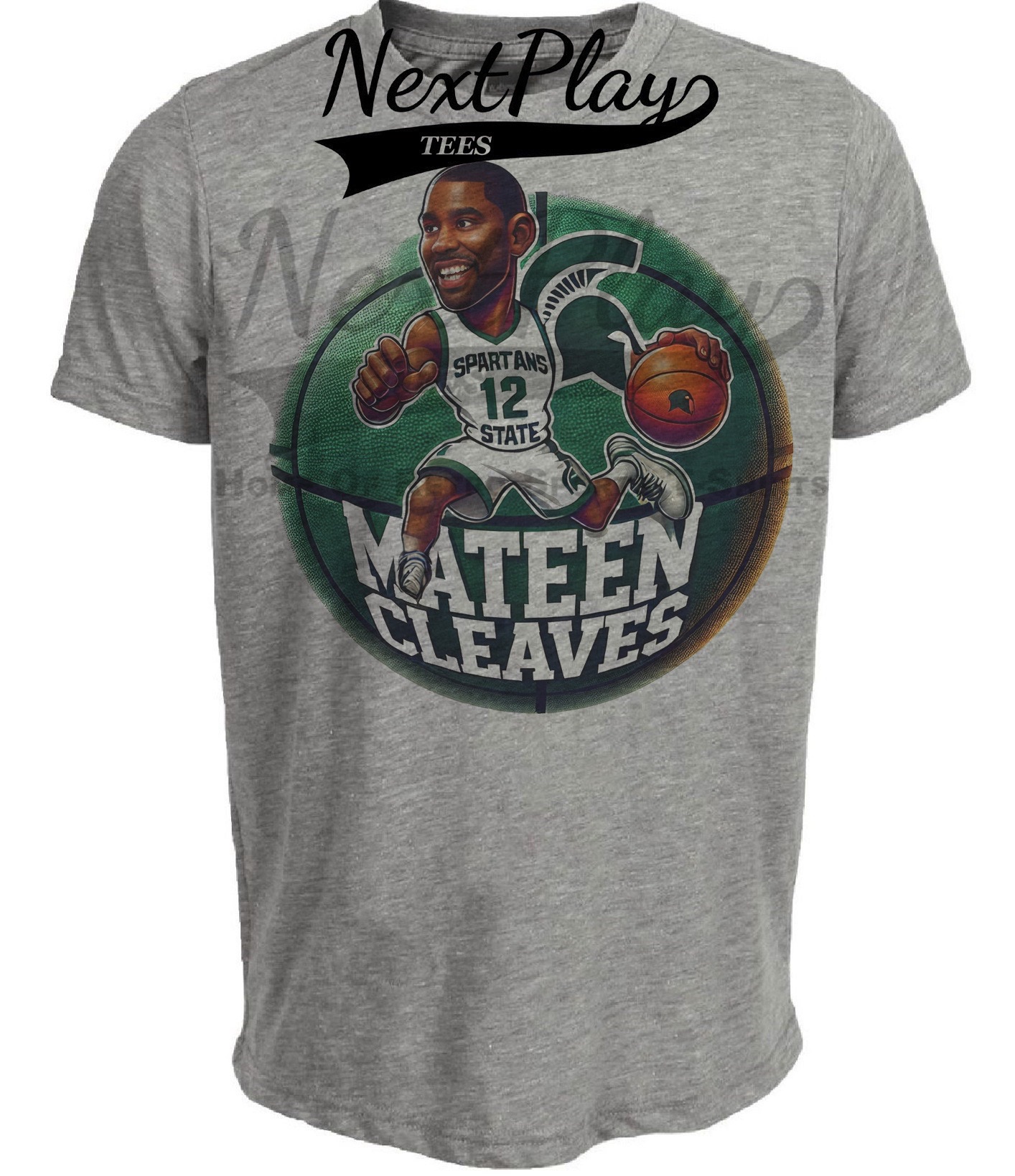 Michigan State Spartans Mateen Cleaves Exclusive Retro March Madness Basketball Artwork Heather Gray Sublimated T-Shirt