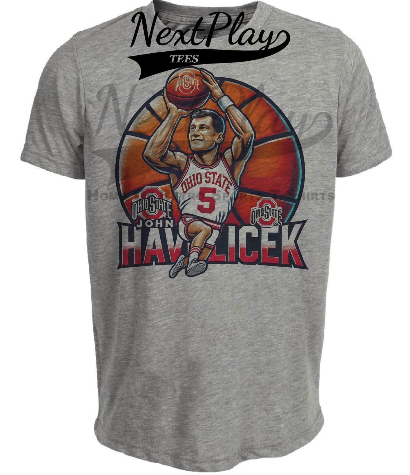 Ohio State Buckeyes John Havlicek Exclusive Retro March Madness Basketball Artwork Heather Gray Sublimated T-Shirt